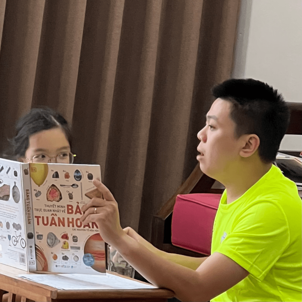 Mẹ mình dạy mình cách dịch sách, giúp mình hiểu sâu hơn về ngôn ngữ và văn hóa. Mỗi khi mình gặp khó khăn trong việc diễn đạt hay không hiểu một khái niệm nào đó, mẹ luôn sẵn lòng giải thích và hướng dẫn mình một cách kiên nhẫn.